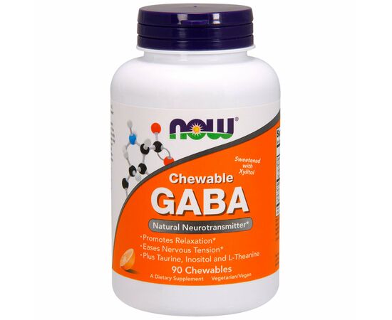 GABA (gamma aminobutyric acid) is a non-protein amino acid that functions as a neurotransmitter in the human brain. GABA is naturally produced in the body and having enough of it can help promote relaxation and ease nervous tension. The delicious orange flavor of Now Chewable GABA combines this naturally occurring neurotransmitter with the relaxing amino acids taurine and theanine for their complementary function.
