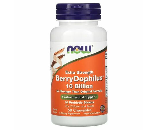 NOW® Extra Strength BerryDophilus™ poskytuje 10 miliard CFU jako kombinaci 10 klinicky ověřených probiotických bakteriálních kmenů navržených pro podporu gastrointestinálního zdraví a zdravé funkce imunitního systému. Zdravá střevní flóra také pomáhá vytvářet příznivé prostředí pro vstřebávání živin. BerryDophilus™ mohou používat dospělí i děti.