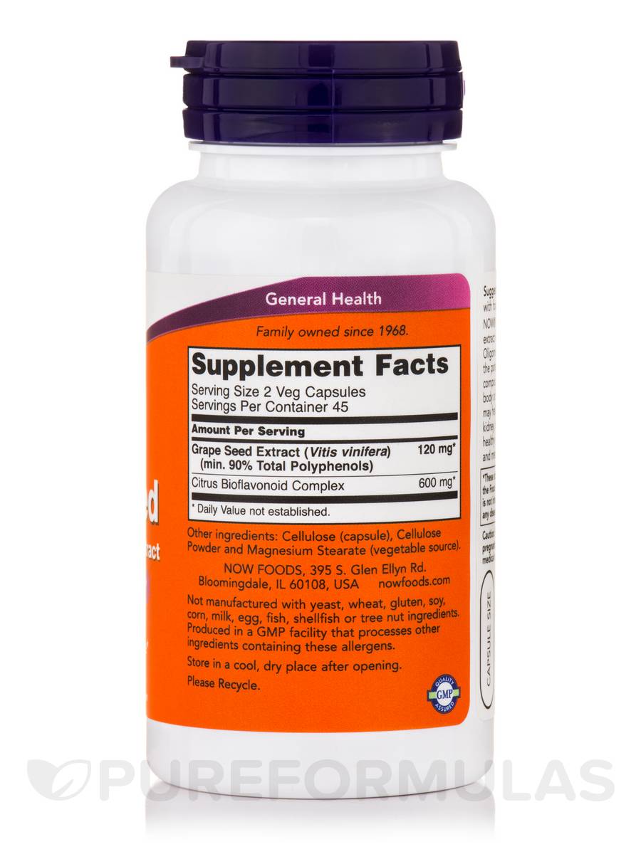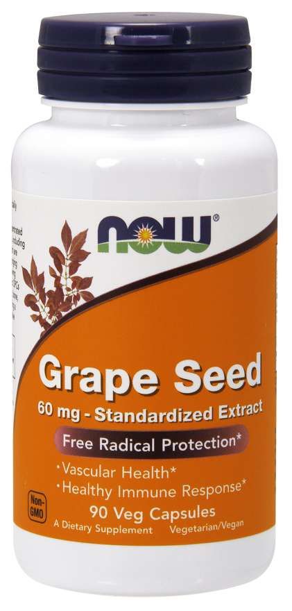 Now Foods extrakt z hroznových semen je vysoce koncentrovaný přírodní extrakt s minimem 90% celkových polyfenolů, včetně oligomerních proanthokyanidinů (OPC), což jsou účinné ve vodě rozpustné sloučeniny zachycující volné radikály, které se nacházejí v hroznových semenech. OPC z hroznových semen mohou přispívat k podpoře cév, kostí, mozku a dalších tkání.