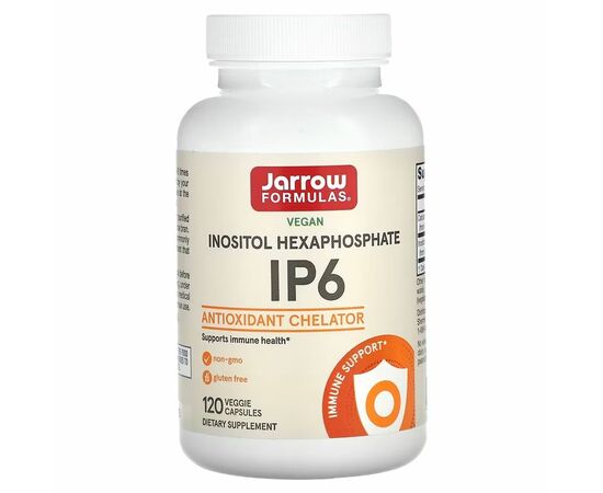 Jarrow Formulas® IP6 obsahuje 500 mg purifikovaného inositol hexafosfátu (IP6) extrahovaného z rýžových otrub. IP6 je fosforylovaná forma inositolu, která se běžně vyskytuje v rostlinných potravinách bohatých na vlákninu. IP6 je živina, která podporuje imunitní zdraví.