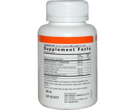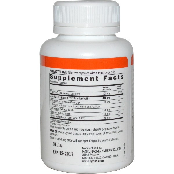 Kyolic Aged Garlic Extract begins with 100% organically† grown garlic bulbs. They are then aged to perfection in a unique extraction process to eliminate odor and create beneficial compounds found only in Kyolic. This combination of vitamins, mushrooms and herbs helps to support healthy immune function.