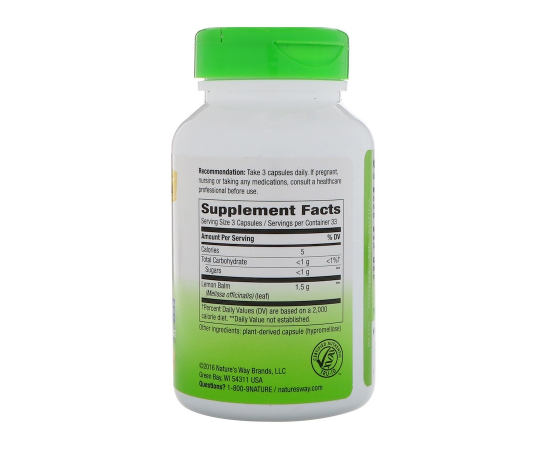 Nature's Way Lemon balm leaves 500 mg, 100 herbal capsules
