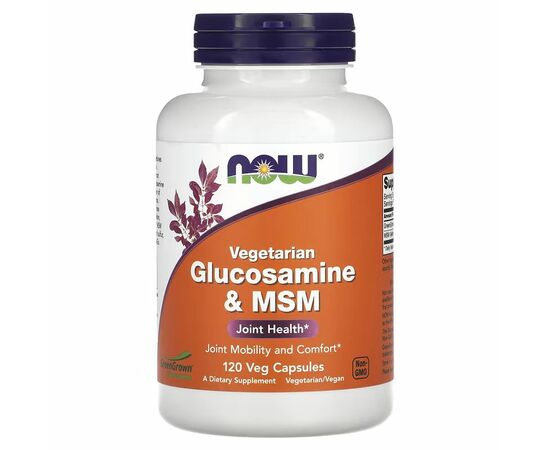 NOW® Vegetarian Glucosamine & MSM combines two well-known joint-supporting ingredients in a vegetarian/vegan-friendly formula that does not contain shellfish-derived glucosamine. Glucosamine is the basic building block for the formation of glycosaminoglycans (GAG) and proteoglycans, the main components of cartilage tissue. These compounds attract water and form a joint cushion, providing lubrication and shock absorption. MSM (Methylsulfonylmethane) is an organic form of sulfur, a mineral essential for the production of GAGs and proteoglycans.