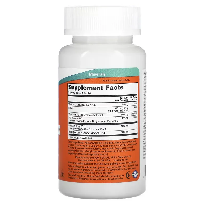 NOWⓇ Iron Complex is a unique blend of Ferrochel™ iron (a bioavailable form of iron) and its important nutrients in combination with complementary plant substances. Iron is a mineral necessary for the formation of hemoglobin, the molecule that transports oxygen to cells throughout the body in red blood cells. Vitamin B-12 and folate are essential for red blood cell formation, while vitamin C is known to increase iron absorption from the GI tract. This vegetarian formula is well tolerated and non-constipating and has been designed to maximize iron absorption and utilization by the body.