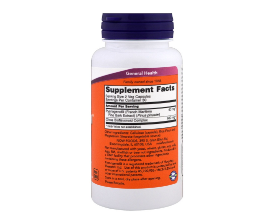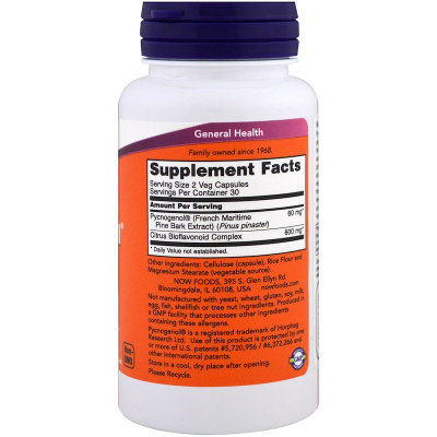 Pycnogenol is a unique combination of proanthocyanidins obtained from the bark of the French maritime pine. As a potent natural scavenger of free radicals, Pycnogenol helps to protect the body's tissues from oxidative stress and supports a healthy, balanced immune system response to normal metabolic stress. Through response to normal metabolic stress. Through these mechanisms, Pycnogenol helps to maintain healthy eye, skin, and joint tissues. In addition, scientific studies have shown that Pycnogenol helps to maintain vascular strength and function.