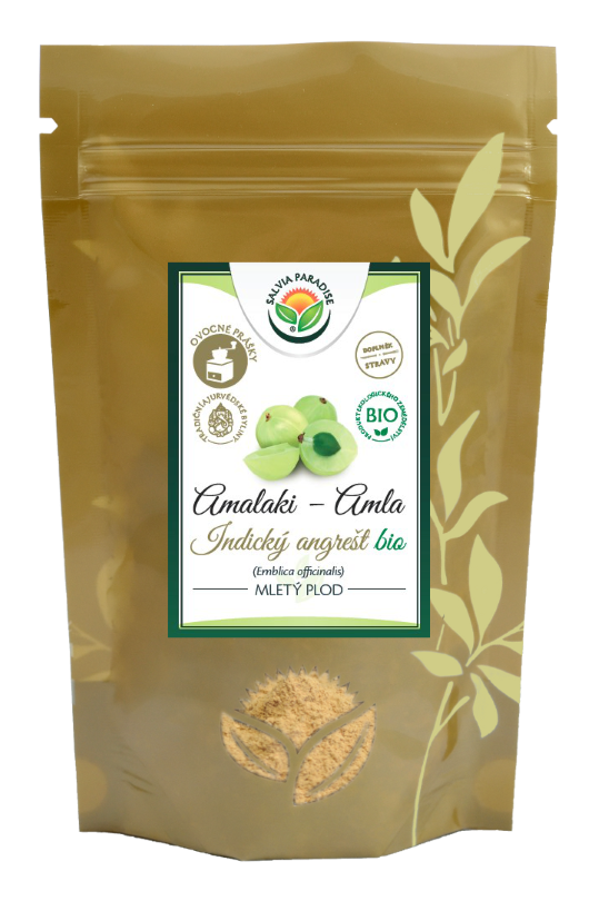 Salvia Paradise, Amalaki, prášek Amalaki (též lidově „indický angrešt”) je malé nažloutlé ovoce, jehož původní domovinou je Indie. Zde se také stalo součástí tradičního léčitelství, tzv. ájurvédské medicíny. Amalaki prášek je vyroben z jeho sušené formy. K účinkům amalaki se váže stará legenda z dávných dob o mudrci jménem Chyawan, který podpořil své chatrné zdraví a nakonec se dožil vysokého věku právě díky konzumaci ovoce, známého jako amalaki.
