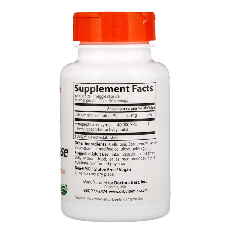 The Serrapeptase in this product is formulated using Serrateric technology, an excellent alternative to enteric coating that protects the enzyme until it reaches the optimal absorption site in the gut.