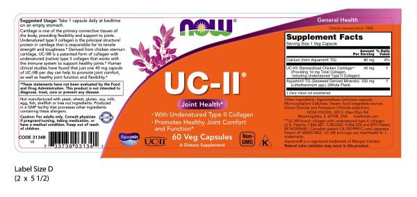 Cartilage is one of the body's primary connective tissues that provides flexibility and support to joints. Undenatured type II collagen is the main structural protein in cartilage, responsible for its tensile strength and durability. UC-II® is a patented form of collagen with undenatured (native) type II collagen that helps support healthy joints. Human clinical studies have found that as little as 40 mg of UC-II® collagen per day can help increase joint comfort as well as healthy joint function and flexibility.