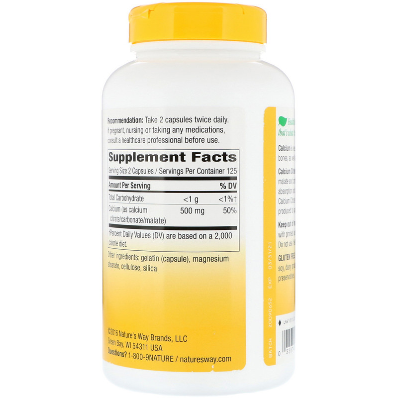 | Calcium (citrate, malate, calcium carbonate) | 500 mg | 62% |