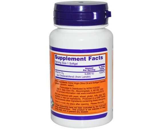 NOW Vitamin D-3 softgels supply this key vitamin in a highly-absorbable liquid softgel form. Vitamin D is normally obtained from the diet or produced by the skin from the ultraviolet energy of the sun. However, it is not abundant in food. As more people avoid sun exposure, Vitamin D supplementation becomes even more necessary to ensure that your body receives an adequate supply.