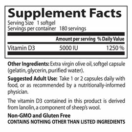 Vitamín D3 5 000 IU v softgelové kapsli od Healthy Origins, je rozpuštěn v základu za studena lisovaného olivového oleje pro maximální absorpci. Vitamín D je vitamín rozpustný v tucích, který pomáhá podporovat růst, vývoj a udržení kostí a zubů u dospělých i dětí. Je také nutný pro správnou absorpci a využití vápníku a fosforu. Ve své aktivní formě vitamín D pomáhá regulovat hladiny vápníku v krvi a tím i regulovat tvorbu kostí.