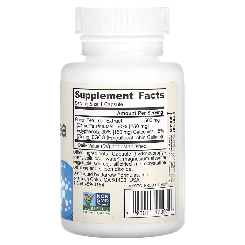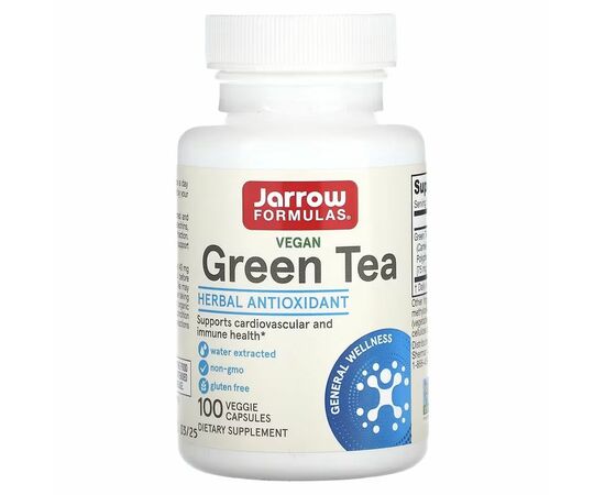 Zelený čaj Jarrow Formulas® je extrahovaný vodou a obsahuje 50 % polyfenolů, včetně 30 % katechinů, z nichž přibližně 15 % tvoří frakce EGCG. Antioxidační polyfenoly v zeleném čaji podporují kardiovaskulární a imunitní zdraví.