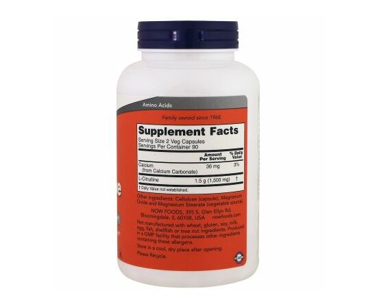 Složení v dávce 2 kapsle : Vápník (z uhličitanu vápenatého) 36 mg (3% RHP*);L-Citrulin 1,5 g (1500 mg)**; *- RHP- Referenční hodnota příjmu;**- RHP není stanovena.